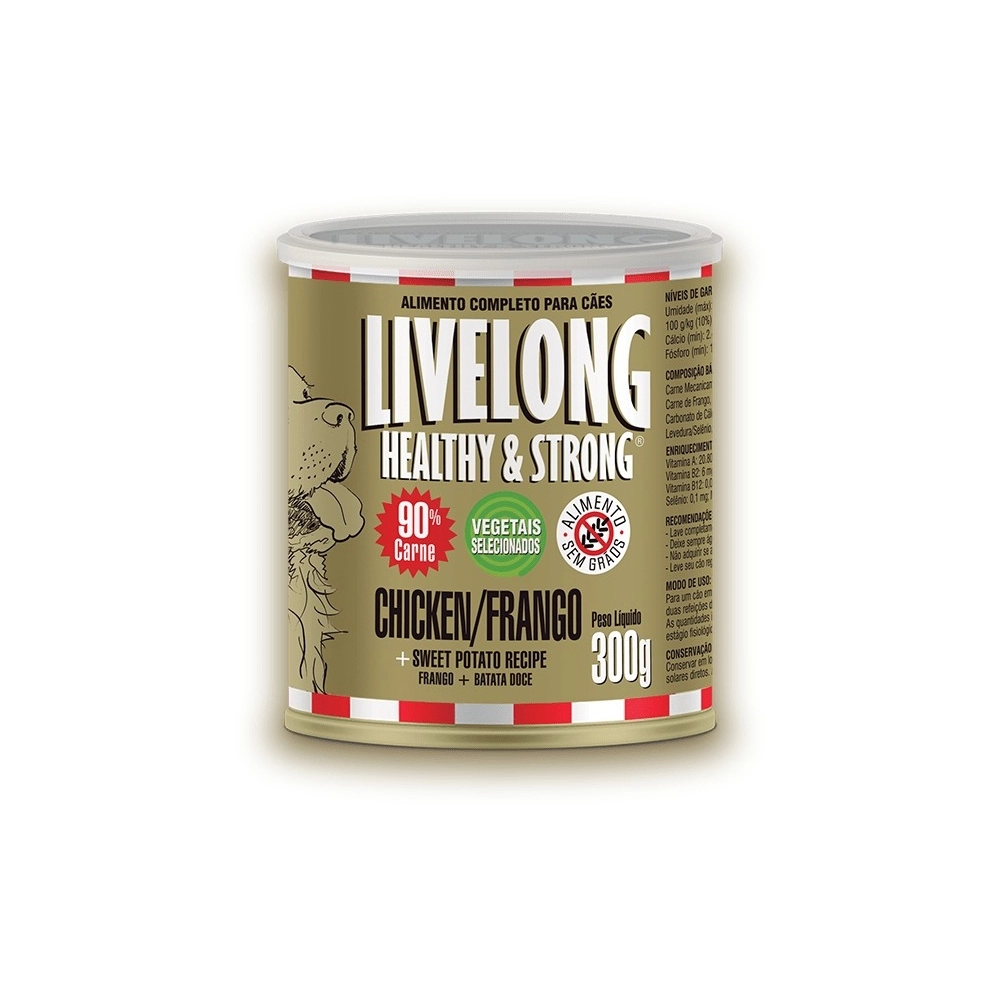NUTRIÇÃO ANIMAL>ÚMIDOS>LIVELONG FRANGO LATA 300 GR